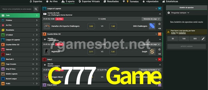 A aposta C777 Game oferece aos jogadores a experiência mais conveniente de apostas em eSports!